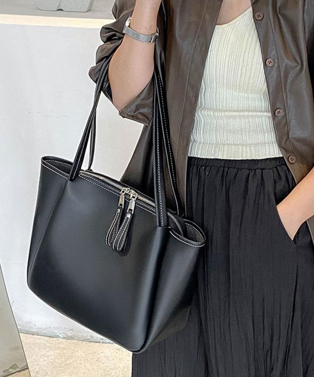トートバッグ レディース ファスナー付き 大きめ 大容量 無地 ブランド 人気 大きい ファスナー 肩掛け チャック付き 通勤 横型 マチ広 ビジネス 合皮 通学 ステッチ ライン PUレザー ライク トート バッグ カジュアル 大人 シンプル おしゃれ 黒 オフィス かわいい 可愛い