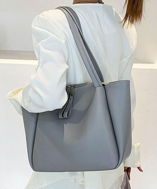 マットな質感のPUレザーをふっくら丸みを持たせ、女性らしいフォルムに仕立てた大人かわいいトートバッグ。