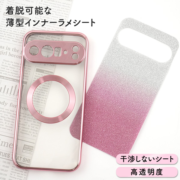 スマホケース Google Pixel10Pro XL用 MagSafe対応 インナーシート付ラメケース シンプル きらきら かわいい 背面保護カバー 装着簡単 おしゃれ スマホカバー 上品 韓国 携帯ケース お洒落 スマートフォンケース 韓国風 韓国っぽ シンプル 上品 グーグルスマホ