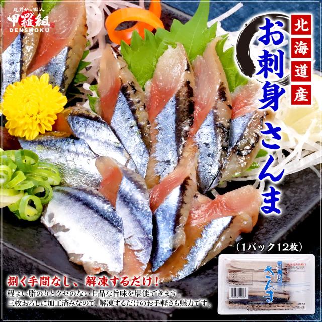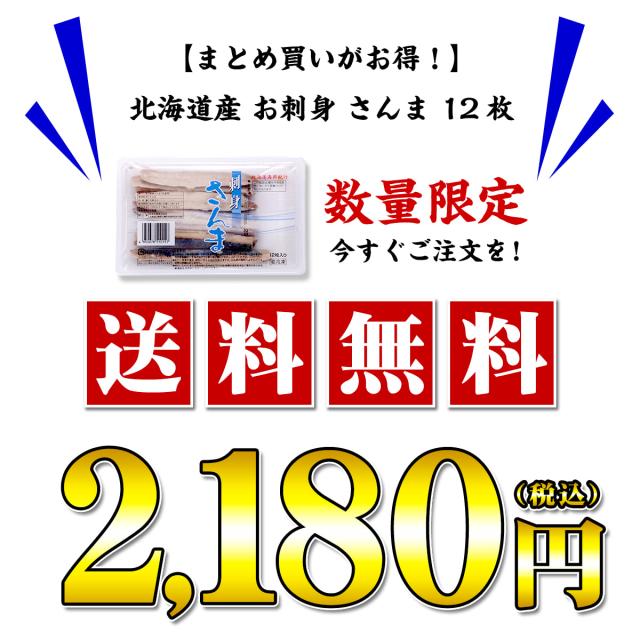 北海道産 お刺身さんま 12枚入 お試し送料無料2,180円!更に2個で600円OFF!3個で1,200円OFF!4個で2,000円OFF!5個で3,000円OFFクーポンあり! 秋刀魚 サンマ さしみ おさしみ おつまみ 刺身用 生食可 冷凍 解凍するだけ 青魚 海鮮丼 炙り 国産 三枚おろし おつくり お造り