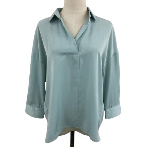 【中古】ビス シャツ ブラウス スキッパー プルオーバー 無地 七分袖 F 緑 水色 グリーン ライトブルー レディース