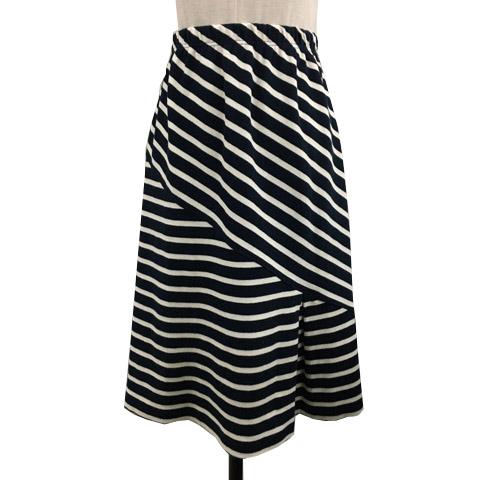 【中古】セントジェームス スカート カットソー フレア 膝丈 ウエストゴム ボーダー 2 紺 白 ネイビー ホワイト