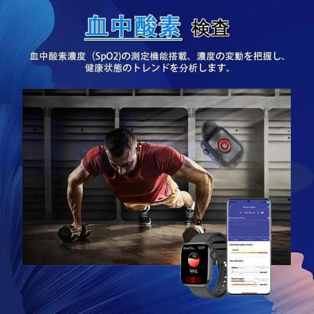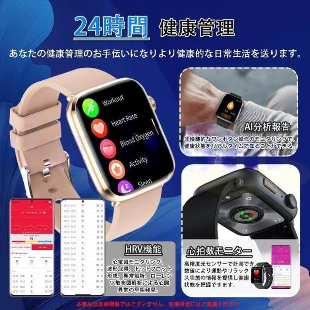 スマートウォッチ 医療レベルHRV 日本製センサー 血糖値 血圧測定 24時間高精度心拍数 血中酸素 体温測定 睡眠管理 呼吸率 歩数計 運動記録 着信通知 2025進化版