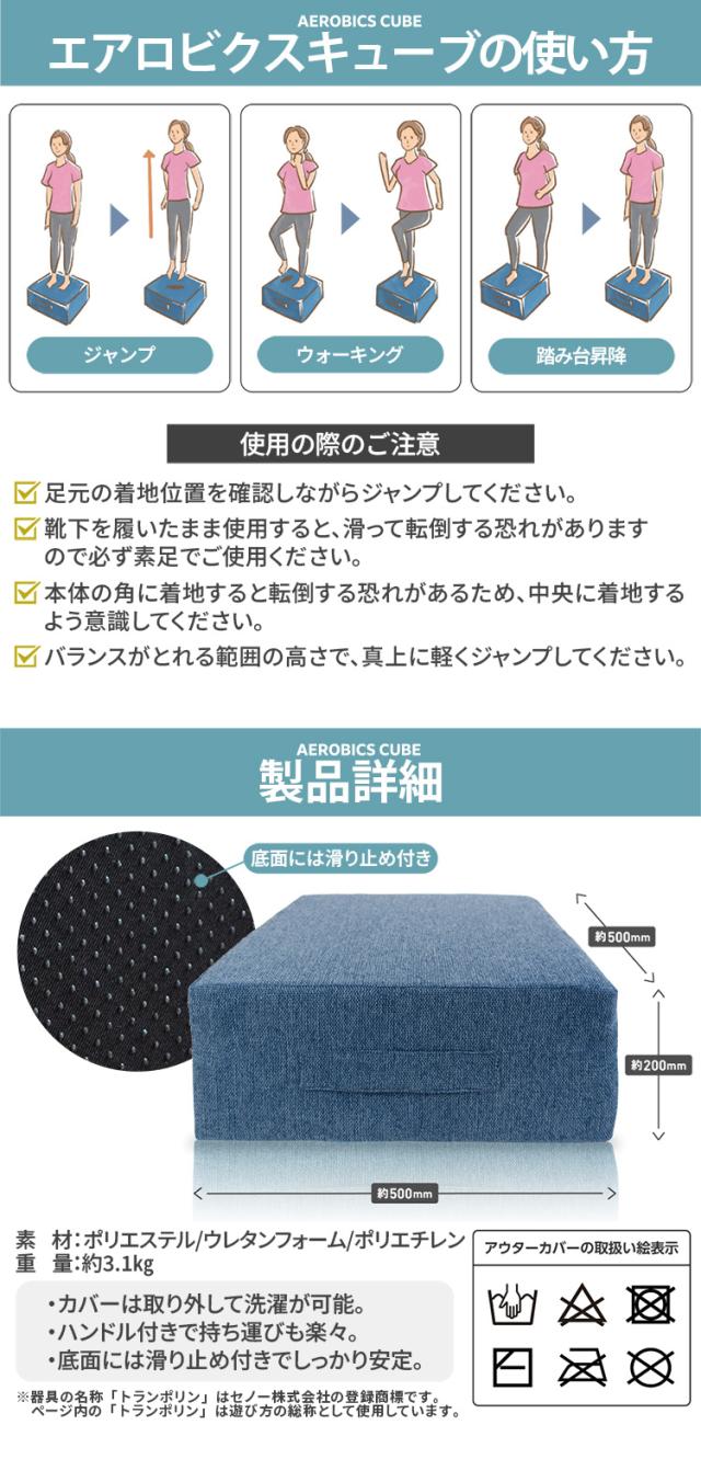 (検索用:トランポリンクッション・エアロビクスキューブ・クッション・トランポリン・ネイビー・高反発・室内運動・組み立て不要・4991150983298・4991150983304)