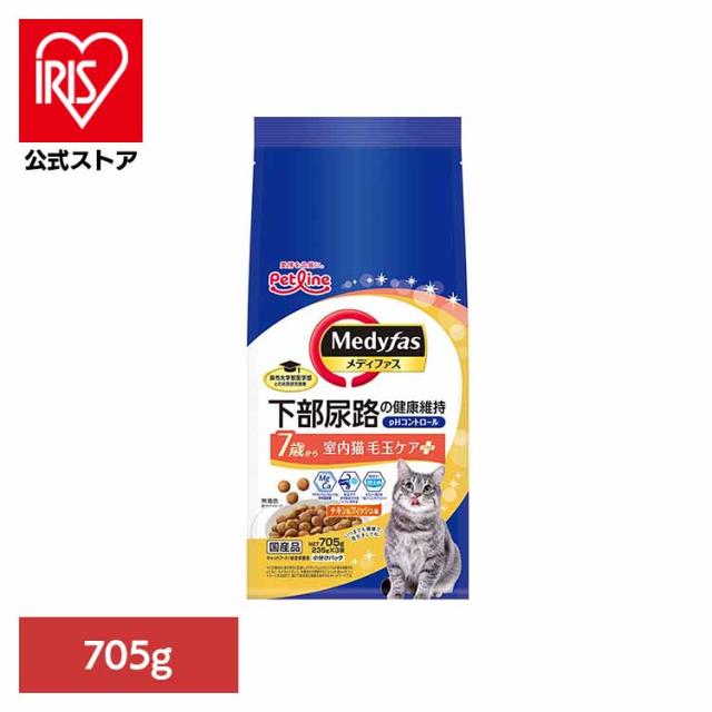 メディファス 室内猫 毛玉ケアプラス 7歳から チキン&フィッシュ味 705g 1041018 ペットライン株式会社 ペット ペットライン 猫 総合栄養食 尿石 下部尿路 毛玉 セルロース 高齢