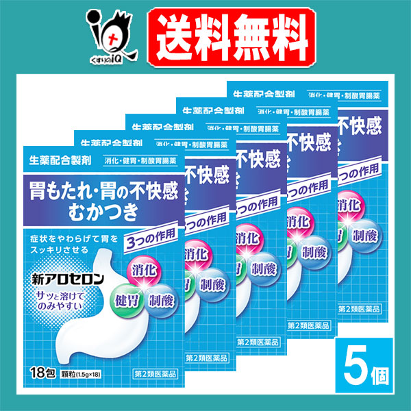 【第2類医薬品】新アロセロン 18包×5個セット【福地製薬】【天真堂製薬】胃もたれ 胃の不快感 むかつき 生薬配合製剤 消化薬 健胃薬 制酸胃腸薬 胃腸薬