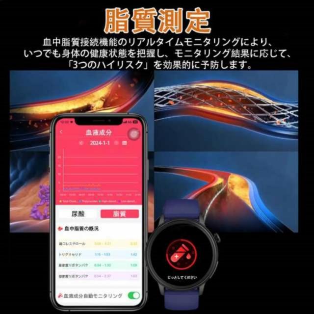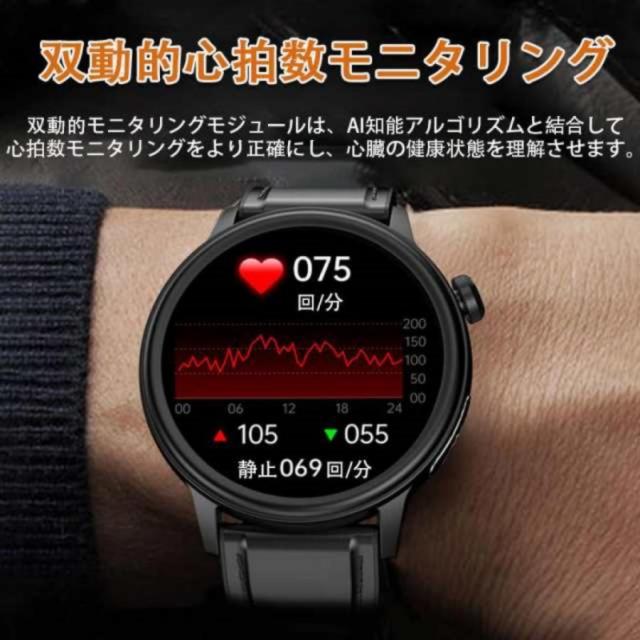 スマートウォッチ 日本製センサー 心電図ECG+PPG 血圧測定 尿酸血中脂質測定 体温測定 血中酸素 高精度心拍数 健康管理 睡眠記録 着信通知 ギフト 2025