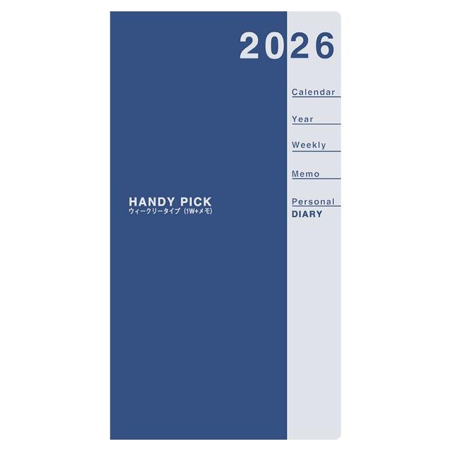【メール便発送】ダイゴー 手帳 2026年 ハンディピック スモールサイズ 1週間+横罫 薄型 濃ブルー E1082
