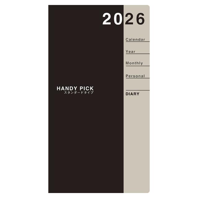 【メール便発送】ダイゴー 手帳 2026年 ハンディピック スモールサイズ 1ヶ月横罫 薄型 濃グレー E1083