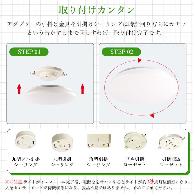 - 配線器具が対応していれば、工具不要・工事不要で女性でもラクに取付可能。届いたその日からすぐ点灯できます。