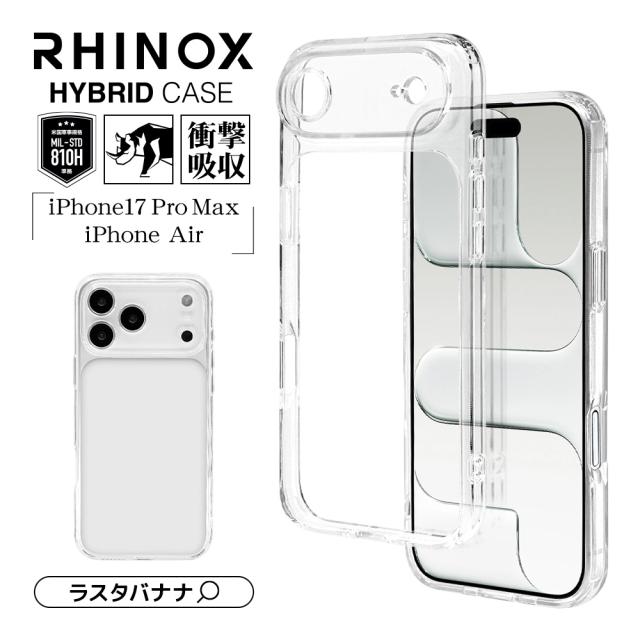 iPhone Air 17 Pro Max ケース カバー ハイブリッド RHINOX ライノックス 極限保護 精密設計 MIL規格 高透明 クリア TPUバンパーケース ワイヤレス充電 ストラップホール アイフォン スマホケース ラスタバナナ