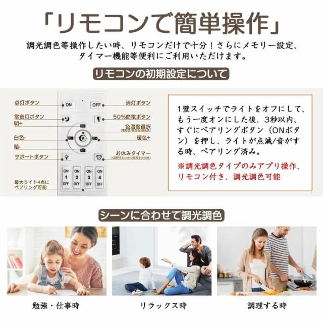 ※調光調色のみリモコンついており、スマホ制御もできる。