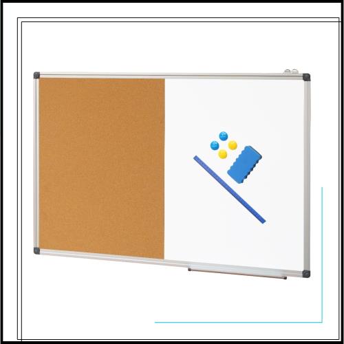 コーティングホワイトボードとコルクボードを組み合わせた、様々な用途にご使用いただけます。ホワイトボードは書いたり記録したりするのに使えます。コルクボードは、書類やメモ、写真などをピンで留めることができ、大切なものをすべて手の届くところに置くことができます。