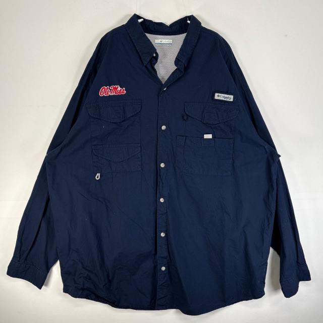 古着 コロンビア Columbia 長袖シャツ 大きいサイズ PFG フィッシングギア ワンポイント ロゴ XL ネイビー 無地 メンズ