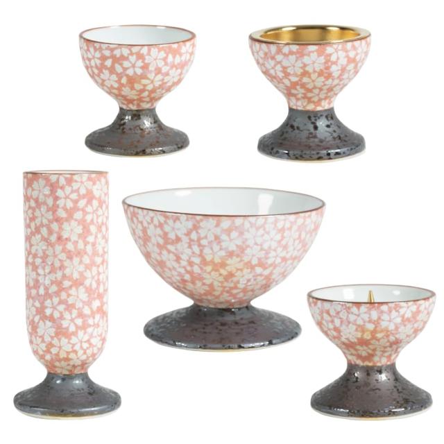 【寸法】花立:φ47×102mm 香炉:φ90×58mm 灯立:φ56×50mm 茶湯器:φ50×50mm 仏器:φ53×50mm