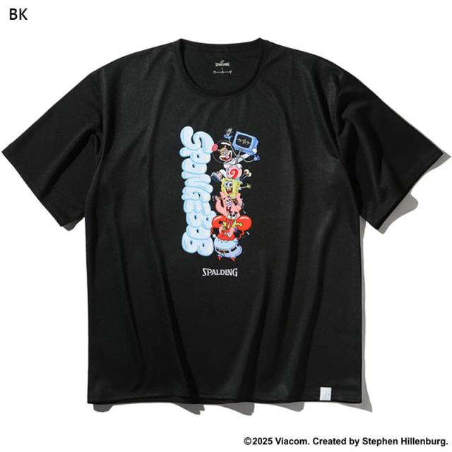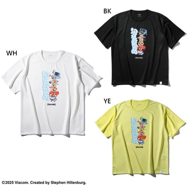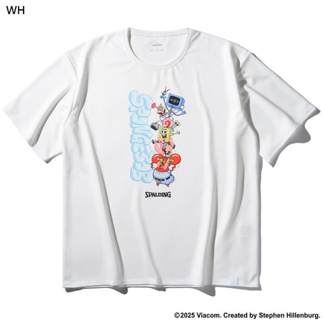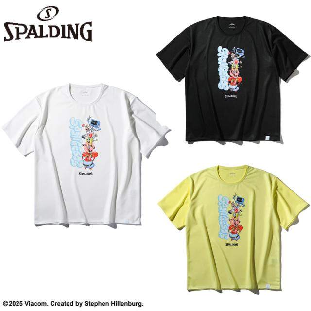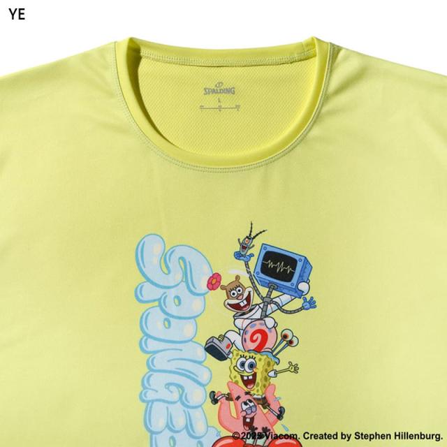 スポルディング スポーツ ジュニア キッズ スポンジ・ボブ キャラクターズ バスケットボール ウェア トップス 半袖 Tシャツ 競技 吸水速乾 UVカット ホワイト 白 ブラック 黒 イエロー 黄色 送料無料 spalding SMT25147S
