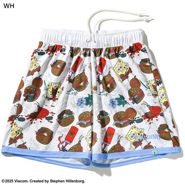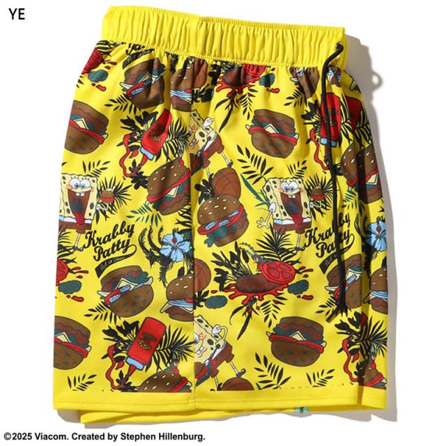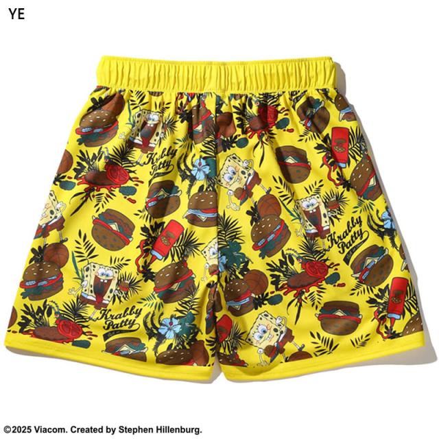 スポンジ・ボブと大好物のハンバーガーの総柄プリントショーツ。