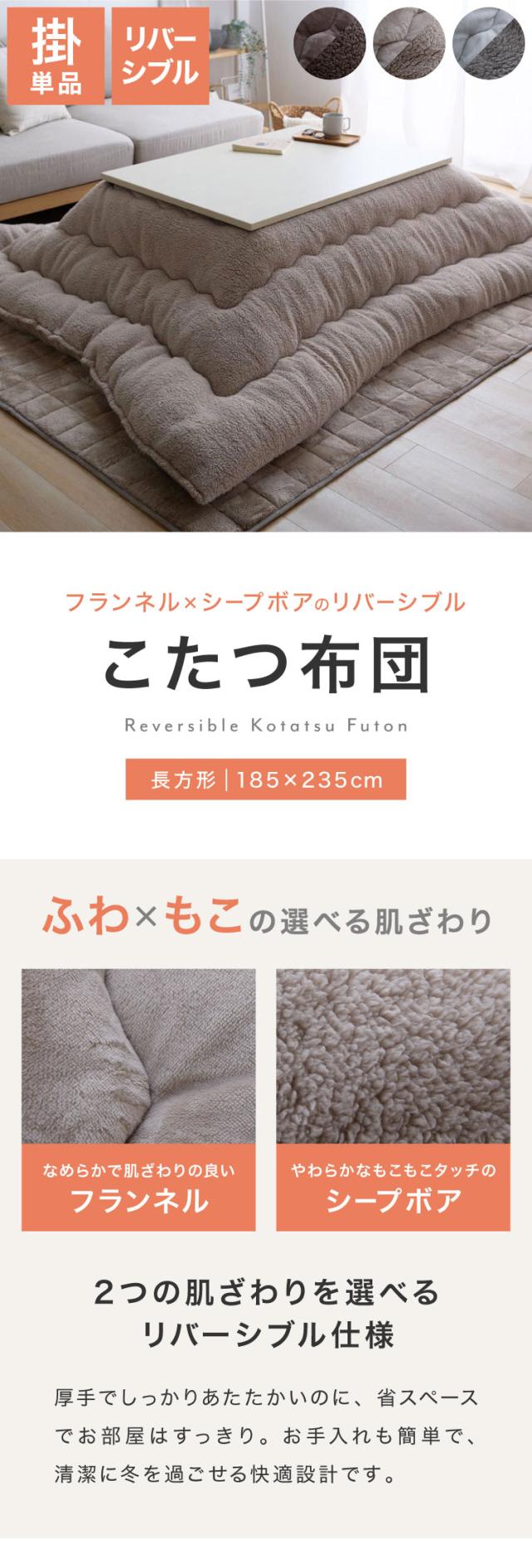 フランネル×シープボアこたつ布団 長方形 185×235cm リバーシブル仕様 省スペース 洗える 厚手 こたつ掛け布団 リバーシブル フランネル シープボア 節電 こたつ布団 あったか【送料無料】