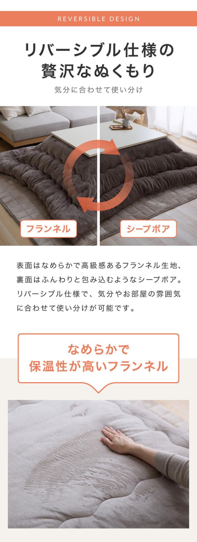 | リバーシブルこたつ布団 フランネル×シープボア | |||