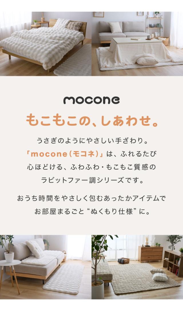 うさぎのようにやさしい手ざわり。「mocone(モコネ)」は、ふれるたび心ほどける、ふわふわ・もこもこ質感のラビットファー調シリーズです。