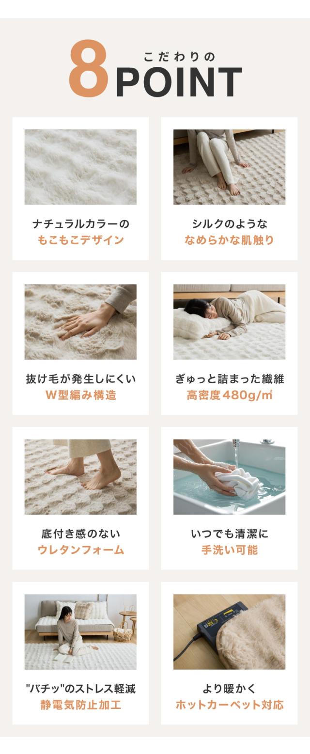mocone もこもこラグ 正方形 180×180cm ラグ カーペット おしゃれ ラグマット 北欧 かわいい 絨毯 洗える もこもこ ぽこぽこ ふわふわ ラグ 冬用 冬 あったか 暖かい リビングマット【送料無料】