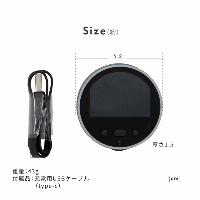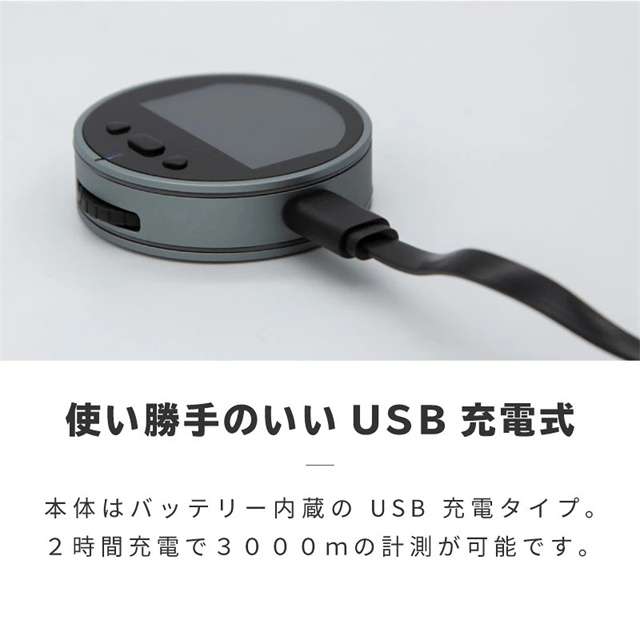 ◆シェル材料:アルミニウム合金+シリコーン ◆画面:18KVA LCD画面 ◆一回測定可能距離:最大99m ◆累積測定可能範囲:最大999m ◆精度:±0% ◆バックライトタイム::30-180秒 ◆ブザー:オン、オフ ◆電池:200mAh 04wh ◆充電ポート:TYPE-C |