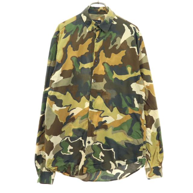 美品 ザラ 迷彩柄 長袖 シャツ S ベージュ ZARA メンズ