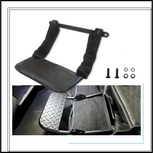 【角度調整可能】折りたたみ式フットレスト、フットレストはラチェットギアになっており、助手席に座ったまま足で押し上げることで高さと角度を調整できます。最も快適な角度を見つけて、最後のレベルは折りたたみ可能です。使いやすく、前席乗員の重心が分散されるので疲れにくく、長距離移動にも便利です。金属製なので鋭利になるため、衣類の汚れ防止と怪我の防止のためにパッドで覆いました。