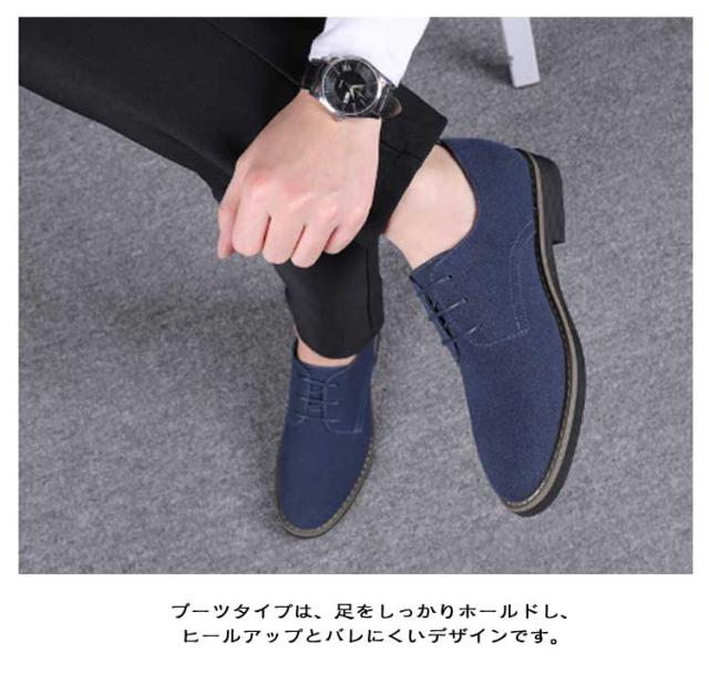 カジュアルシューズ スエード 合成皮革 ビジネスシューズ ブーツ シークレットブーツ スエード調 脚長 メンズ シークレットシューズ 背が高くなる靴 無地 レースアップ ブルー ブラック グレー ブラウン