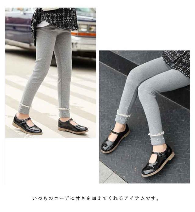 | かわいいパールつきの女の子らしいレギンス 柔らかい素材でお子様も履きやすく、体にフィットします! ウエストはゴムでゆったりなのでストレートフリーな履き心地。 いつものコーデに甘さを加えてくれるアイテムです。 ワンピースやチュニックはもちろん、オーバーサイズのTシャツやスエットとも相性抜群です! 通園通学に何枚あっても困らないアイテムです。 | |