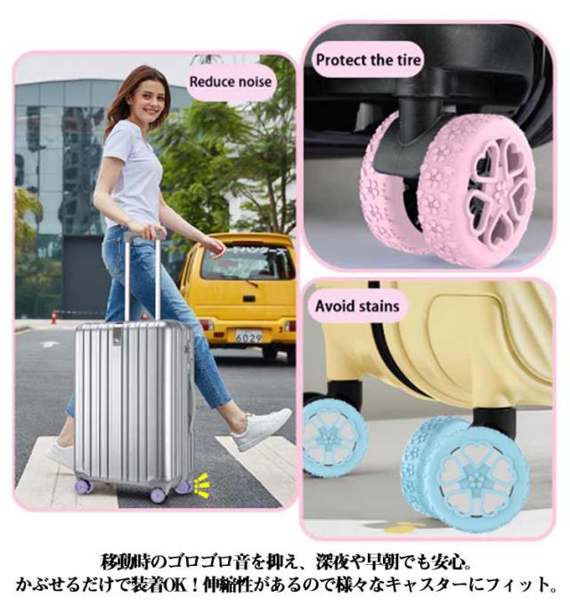 タイヤカバー スーツケース キャスターカバー 8点セット スーツケース フルカバー スーツケース キャスター保護 フルタイプ キズ防止 カバー 騒音軽減 桜柄 可愛い シリコン キャスター カバー スーツケース