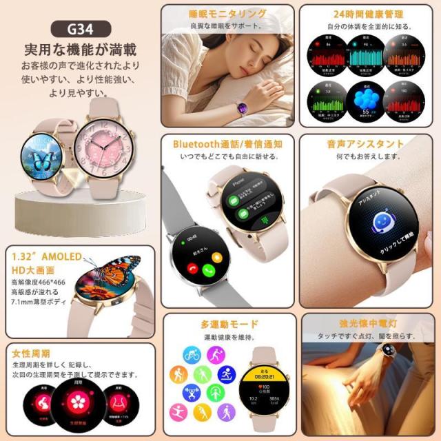 スマートウォッチ 日本製センサー 通話機能 心拍数 血中酸素 睡眠管理 健康管理 着信&LINE通知 生理周期 スポーツウォッチ iPhone対応 アンドロイド対応
