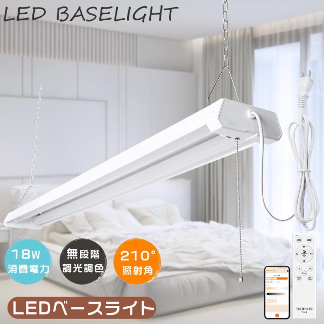 LEDベースライト 20W形 2灯相当 プルスイッチ付きLED照明器具 リモコン付き アプリ操作 ベースライト おしゃれ LED蛍光灯20W型 器具一体型 18W 高輝度3600lm 工場用LED照明 4台まで連結可能 吊り下げ 天井照明LED シーリングライト ACプラグ付 調光調色 遠隔制御 節電 長寿命