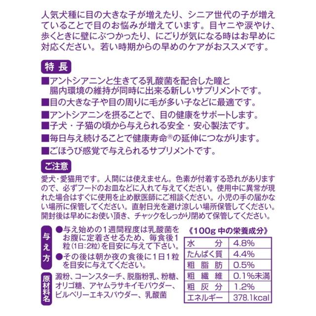 澱粉、コーンスターチ、脱脂粉乳、粉糖、オリゴ糖、乳酸菌、アントシアニン