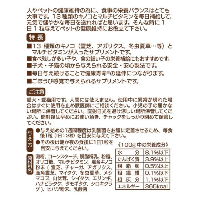 13種類のキノコとマルチビタミンが入ったサプリメントです。