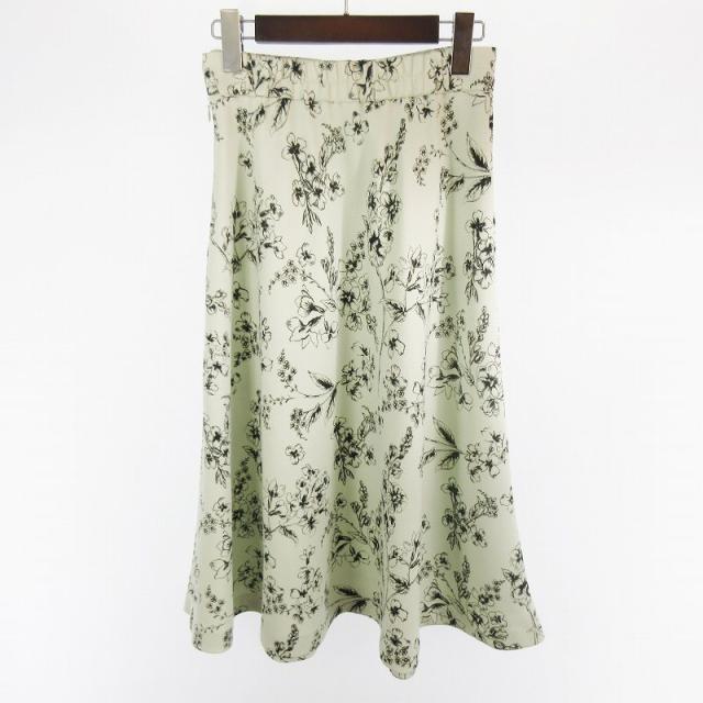【中古】ストロベリーフィールズ STRAWBERRY-FIELDS ロングスカート フレアー 花柄 フラワー ミントグリーン 黒 緑 1