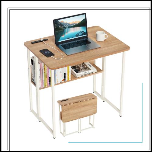 【多機能折りたたみデスク】折りたたみが簡単で、折りたたんで立つこともでき、寝室、リビングルーム、キッチン、オフィス、その他の場所に適した室内装飾用の収納室、ドレッサー、またはキッチンサイドテーブルとして使用でき、デスクトップはそのままですパソコンの電源やスマートフォンの充電用のソケットとUSBポートがあります。