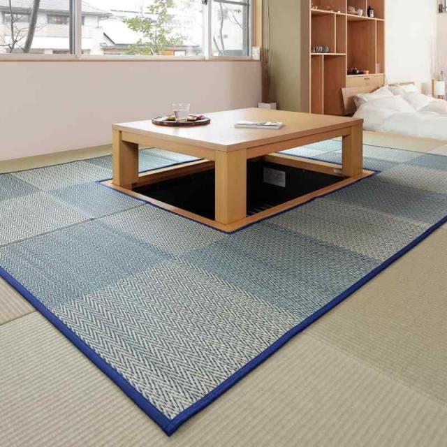 萩原 掘りごたつ対応 い草ラグ 裏貼り ブルー 約191×191cm い草カーペット 抗カビ 市松模様