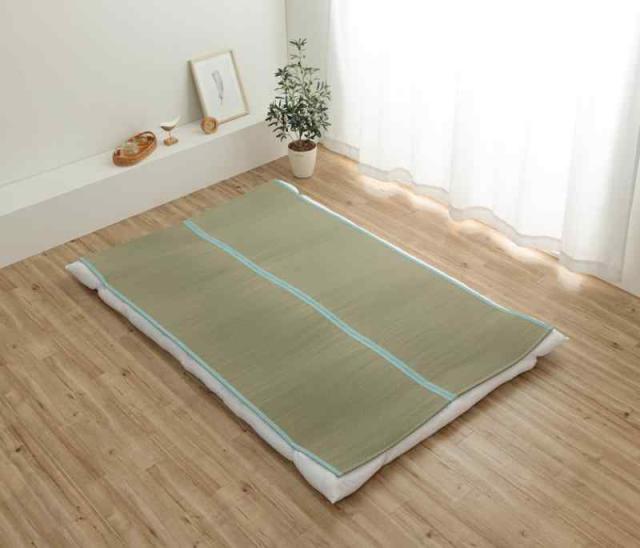 イケヒコ い草 敷きパッド 日本製 い草シーツ ダブル 寝ござ 癒やし ブルー 約130×200cm ゴムバンド付き 無染土 抗菌 防臭 消臭 無垢 国産 夏用 敷パッド 畳 たたみ ねござ ネゴザ い草マット ゴザ #1122920040901