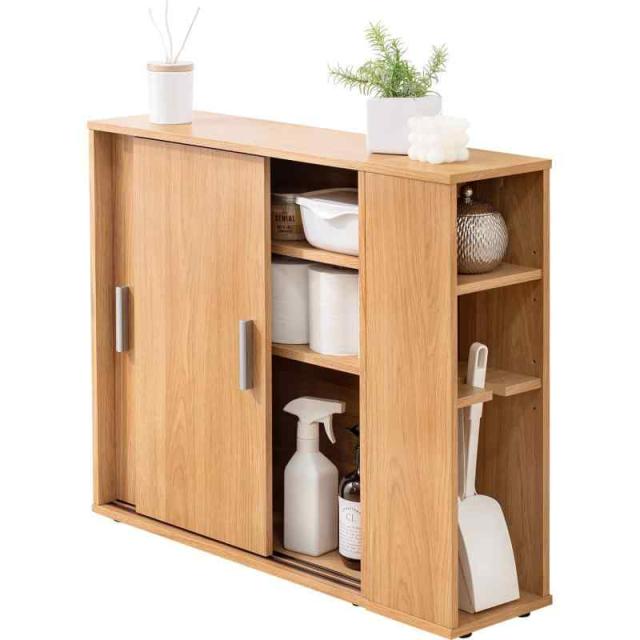 萩原(Hagihara) トイレラック 収納 スリム 洗面所収納 サイドラック 棚板 取っ手 付き 引き戸 薄型 コンパクト 幅74×奥行19.5×高さ61 ナチュラル RTR-1139NA