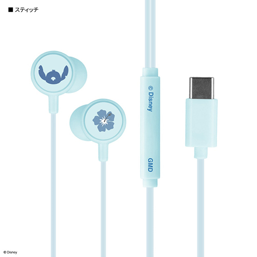 グルマンディーズ(gourmandis) DNG-280ST スティッチ ディズニーキャラクター / リモコンマイク付き USB Type-C ステレオイヤホン