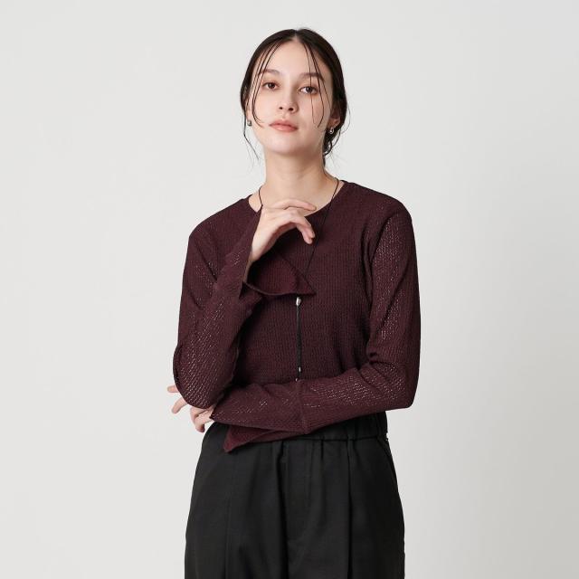 キャミソールを添えてシアー感を楽しむのはもちろん、ジャケットの袖口からカフス部分をひらっと覗かせたインナー使いも◎。