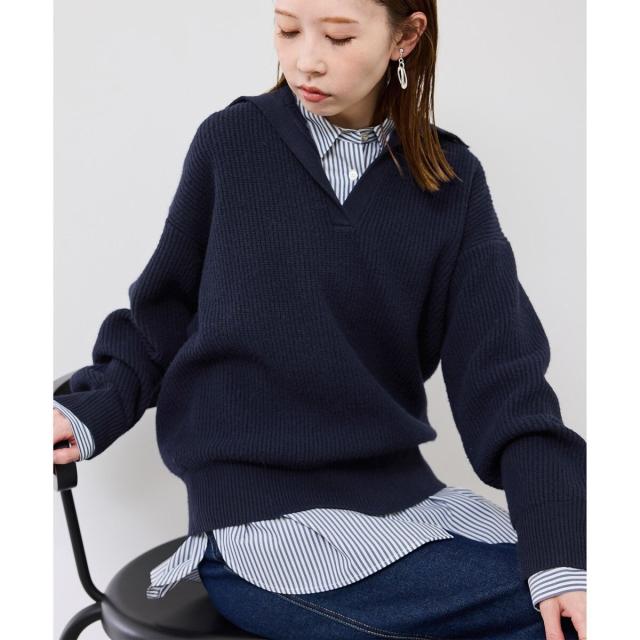 ・ボタンレスのスキッパーデザインが、抜け感とこなれ感を演出。
