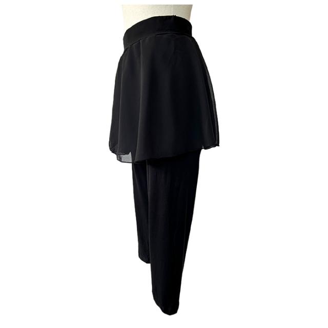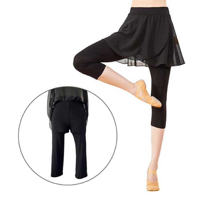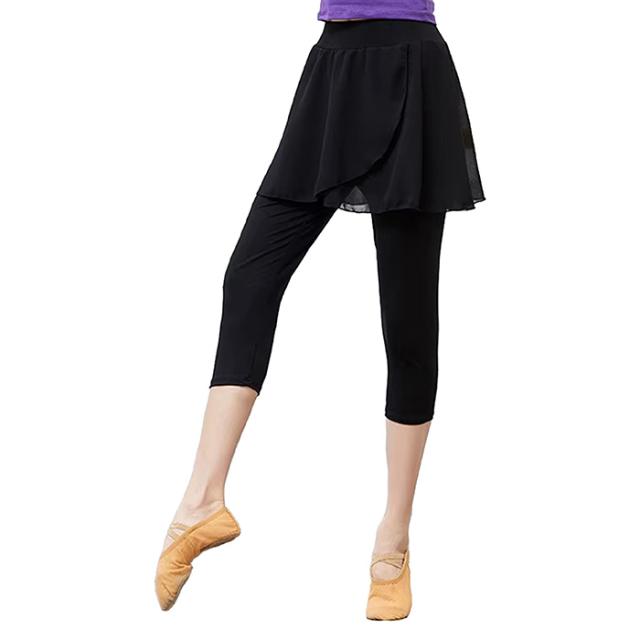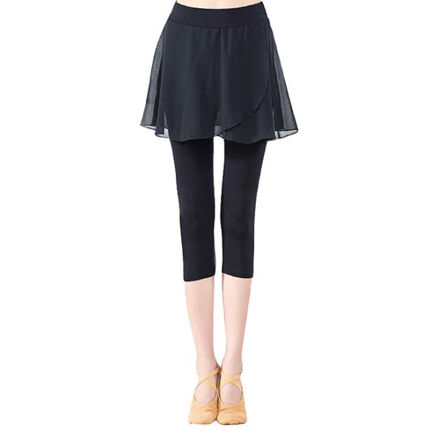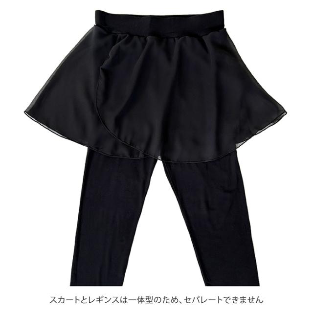 バレエ パンツ スカート付き バレエパンツ レギンス 7分丈 ダンススパッツ 大人 ジュニア 用 バレエスカート インナー付き シフォンスカート ウエストゴム おしゃれ ストレッチ 伸縮 レッスン 練習 バレエ ヨガ トレーニング ウエア 黒 ブラック 140 145 150 155 160 165 170