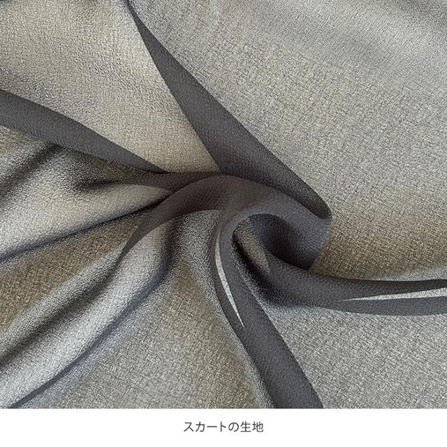 透け感のある軽やかなフレアスカートは、美脚効果でスタイルを美しくみせます。