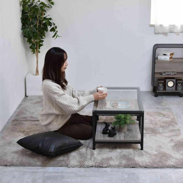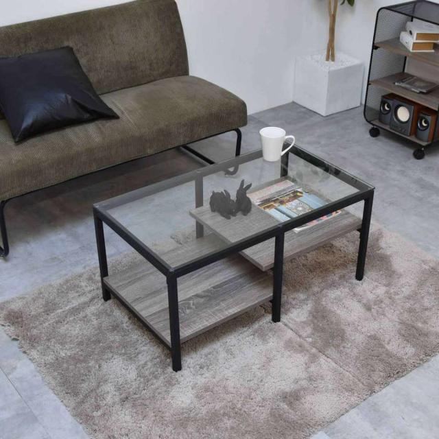 センターテーブル 幅80cm ガラス天板 収納棚付 Exie ( ローテーブル リビングテーブル 長方形 ガラステーブル 収納付き 奥行44.5cm ズレない天板 リビング おしゃれ 座卓 ディスプレイ カフェテーブル コーヒーテーブル 作業台 )