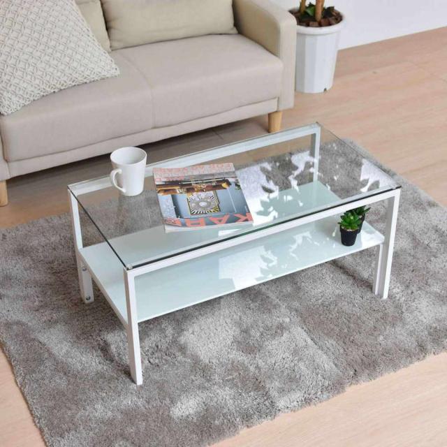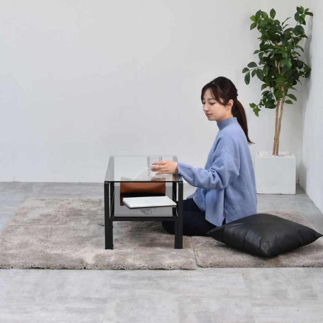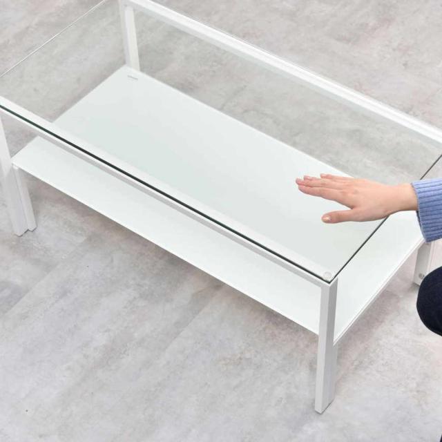 センターテーブル 幅75cm ガラス天板 収納棚付 Arca ( ローテーブル リビングテーブル 長方形 ガラステーブル 収納付き 奥行40cm ズレない天板 リビング おしゃれ 座卓 ディスプレイ カフェテーブル コーヒーテーブル 作業台 )