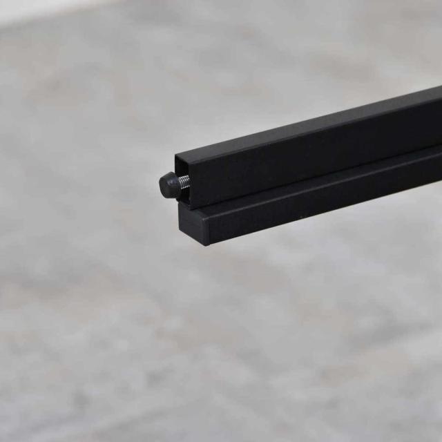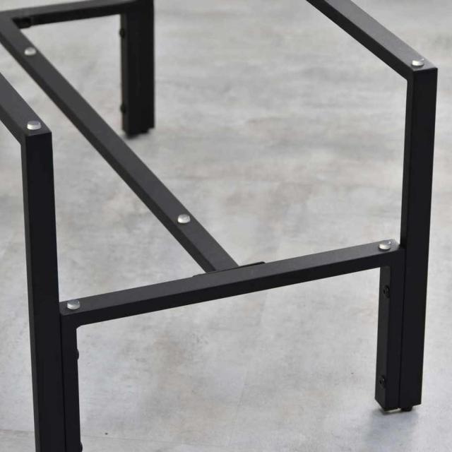 薄い棚板の補強としてH型のパイプを追加しています。棚板の中心にパイプがあることで、荷重がかかっても支えられ、割れにくいです。