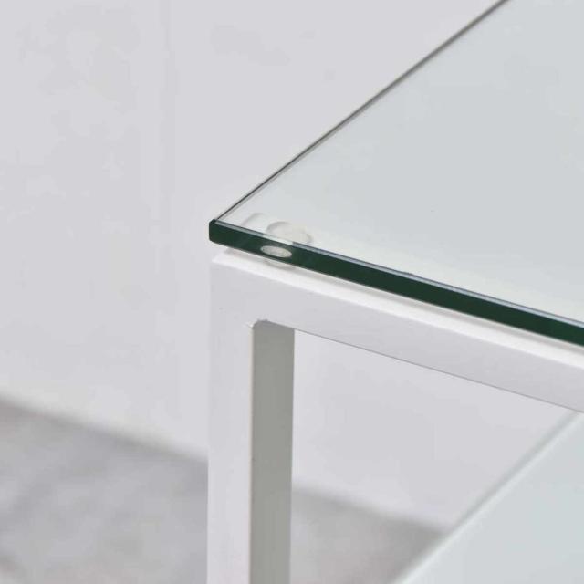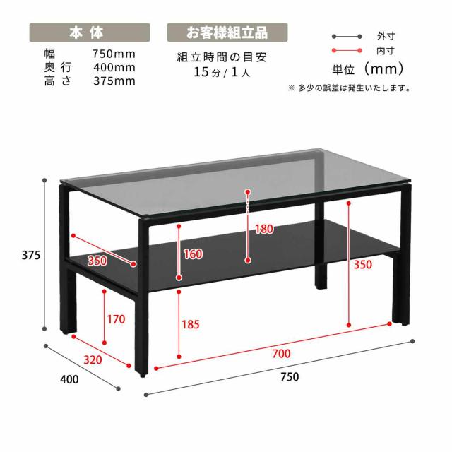 | 材質 | 天板:8mm強化ガラス 棚板:5mm強化ガラス 脚:スチールパイプ(粉体塗装) |