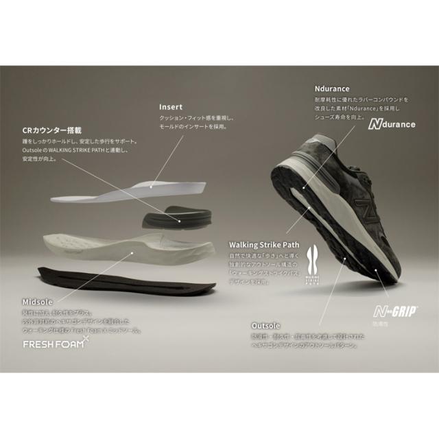 ウォーキング仕様のFresh Foam Xミッドソールと、安定性を確保するかかとのCRカウンター。
